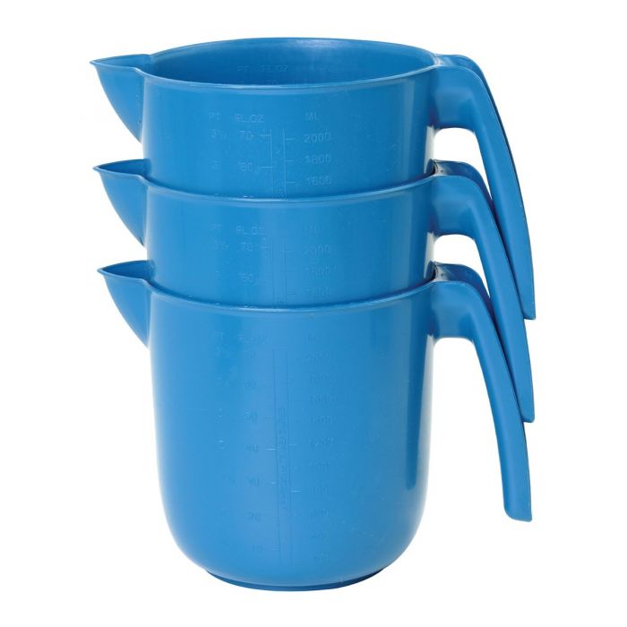 This stackable pouring jug comes in two sizes and nine different colours and is manufactured from EU and FDA food contact approved detectable polymer.
