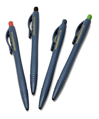 These retractable economy pens are ergonomic, with ridges at the point of grip, and come in four different ink colours.